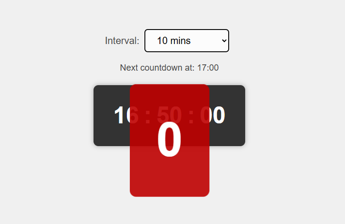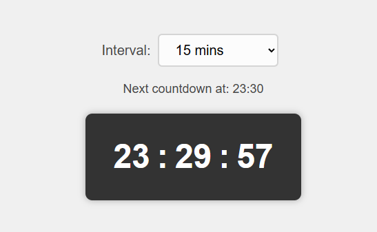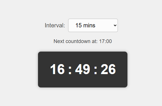 Intervalのところがドロップダウンリストになってますので、交代の時間間隔(10,15,20,30分から選べます)を選択してください。準備はそれだけ!時計は勝手に動いてます。そして15分毎にカウントダウンして0になると赤色でピカピカ点滅して、交代時間が来たことを教えてくれます。これに気が付かない人は多分いないはず!!(笑)