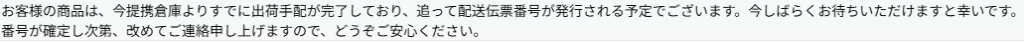 そして、出荷手配は完了しているので、そのうち追跡番号がわかりますのでそれまで待っててください。また連絡するので、どうぞご安心ください。