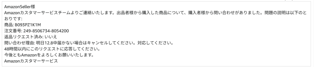 なんとも事務的なキャンセルの依頼です。そして今後ともAmazonをよろしくお願いいたします。と、出荷を偽装する出品者に言うセリフではないような。。なんだかなあ。