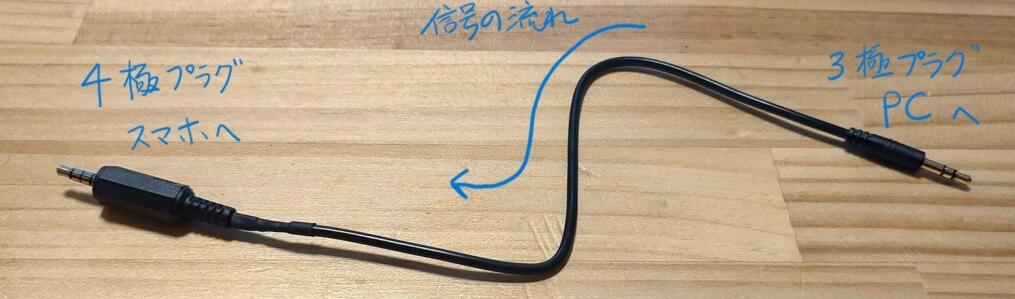 余談ですが、このUSB 3.5㎜変換ケーブルを使う場合には、テックよしき特製ケーブルではなく、市販のケーブルを使っても動くことがあります。その理由は、内臓マイクから外部マイクに切り替える仕組みが違うからです。詳細はややこしいので割愛しますが、変換ケーブルを使う場合は普通のケーブル(こんなやつ)をそのまま繋いでも認識されて動くことがあります。ただし、ちゃんとした接続になっていないので、たまたま動いているだけだとご理解ください。