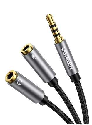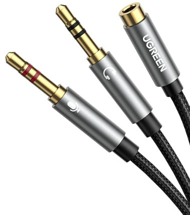 Amazon | UGREEN 3.5mm 4極 3極 変換ケーブル 4極(メス) -3極(オス*2)マイク 3.5mm 変換ケーブル ステレオ Hi-Fi音質再生 多重シールド 高耐久性ナイロン編み 24K金メッキコネクタ マイク入力・ヘッドホン出力 プラグStep-Down設計 20CM | UGREEN | ステレオケーブル