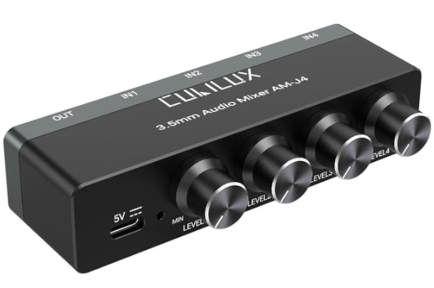 Amazon | Cubilux 3.5mm オーディオ ミキサー、4ウェイ ステレオ/モノAUX ミキサー