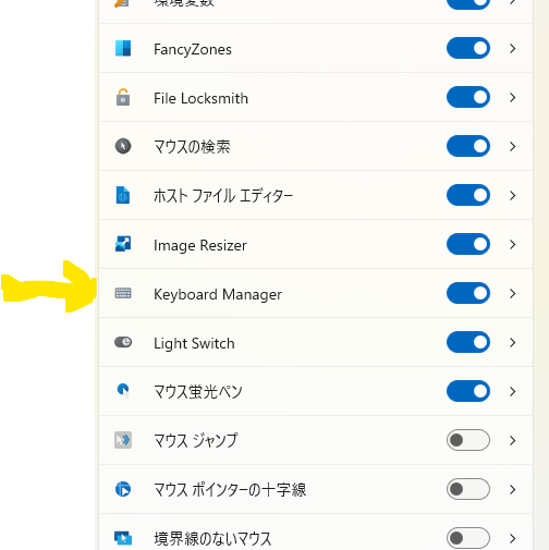 ユーティリティのちょっと下の方にKeyboardManagerというのがありまして、これを有効にします。